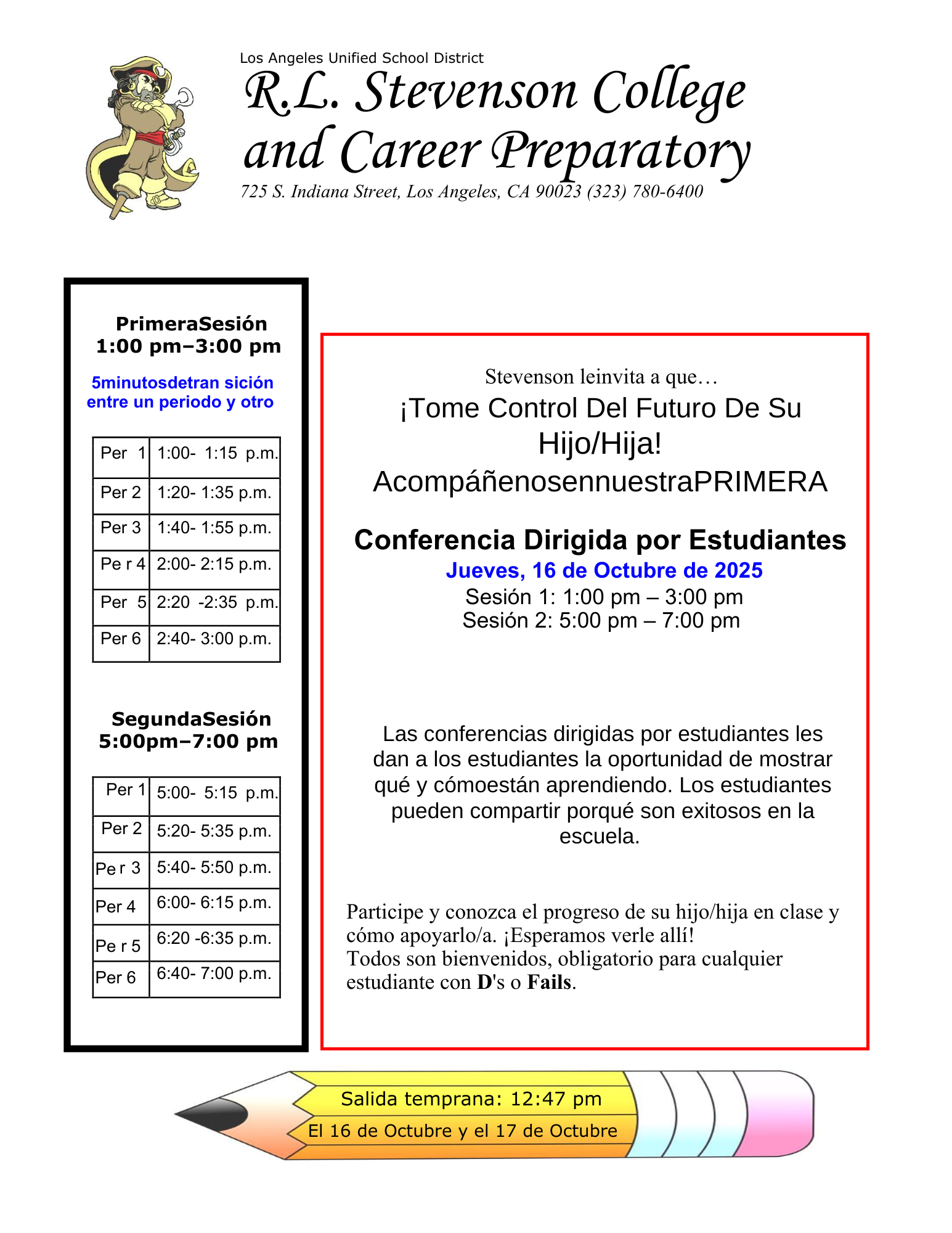 Participe y conozca el progreso de su hijo/hija en clase y cómo apoyarlo/a. ¡Esperamos verle allí!