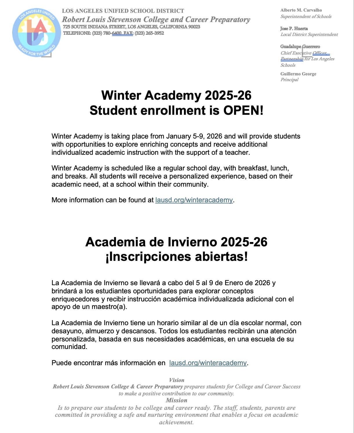 A Proud Member of the Partnership for Los Angeles Schools Network